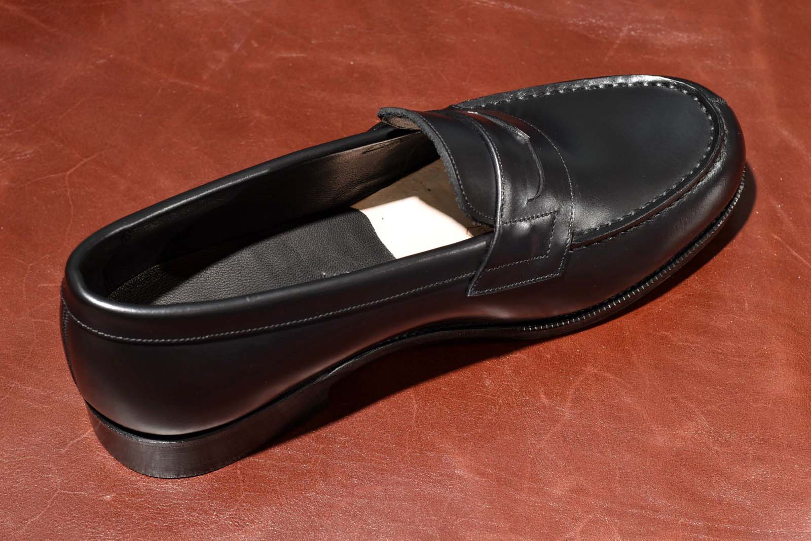 またローファーを作成する上で大切なことは「屈曲性」。履き口が広いローファーは踵が抜けやすい特性があるので、今回製法は耐久性と屈曲性に優れた「ハンドソーンウェルテッド(九分仕立て)」を採用。ライニング(内側の革)には柔らかく弾力性があり、非常に足馴染みが良いレザーを使用。屈曲性に優れた履き心地が優しく足を包み込みます。