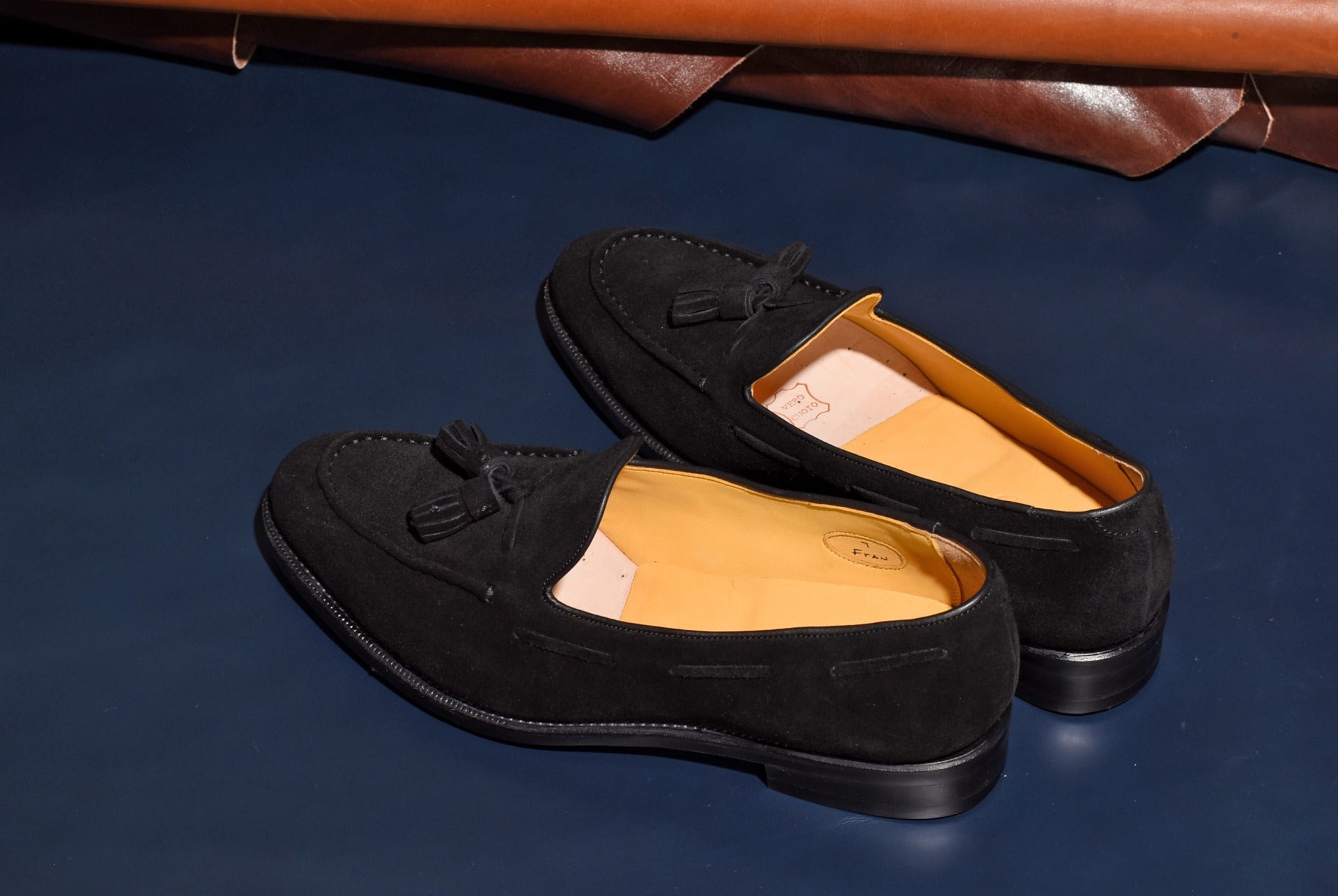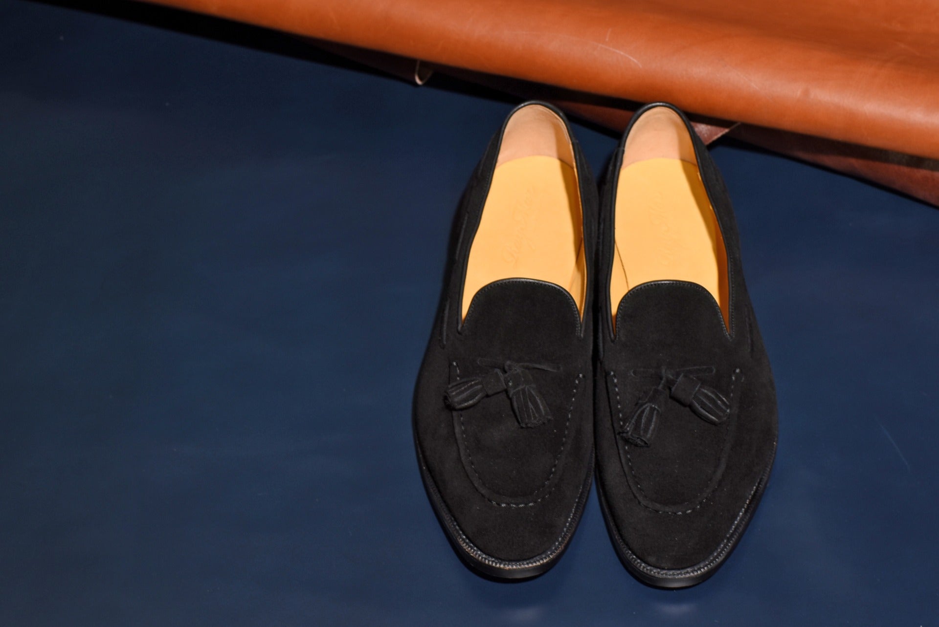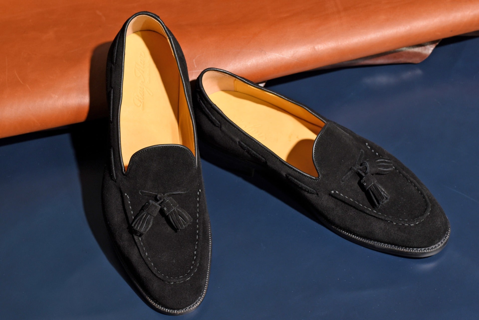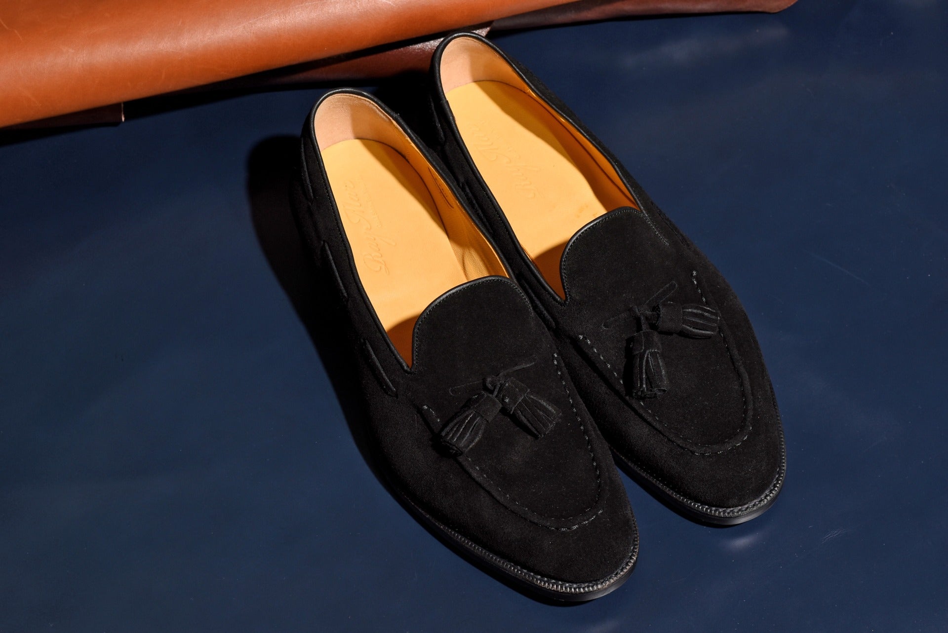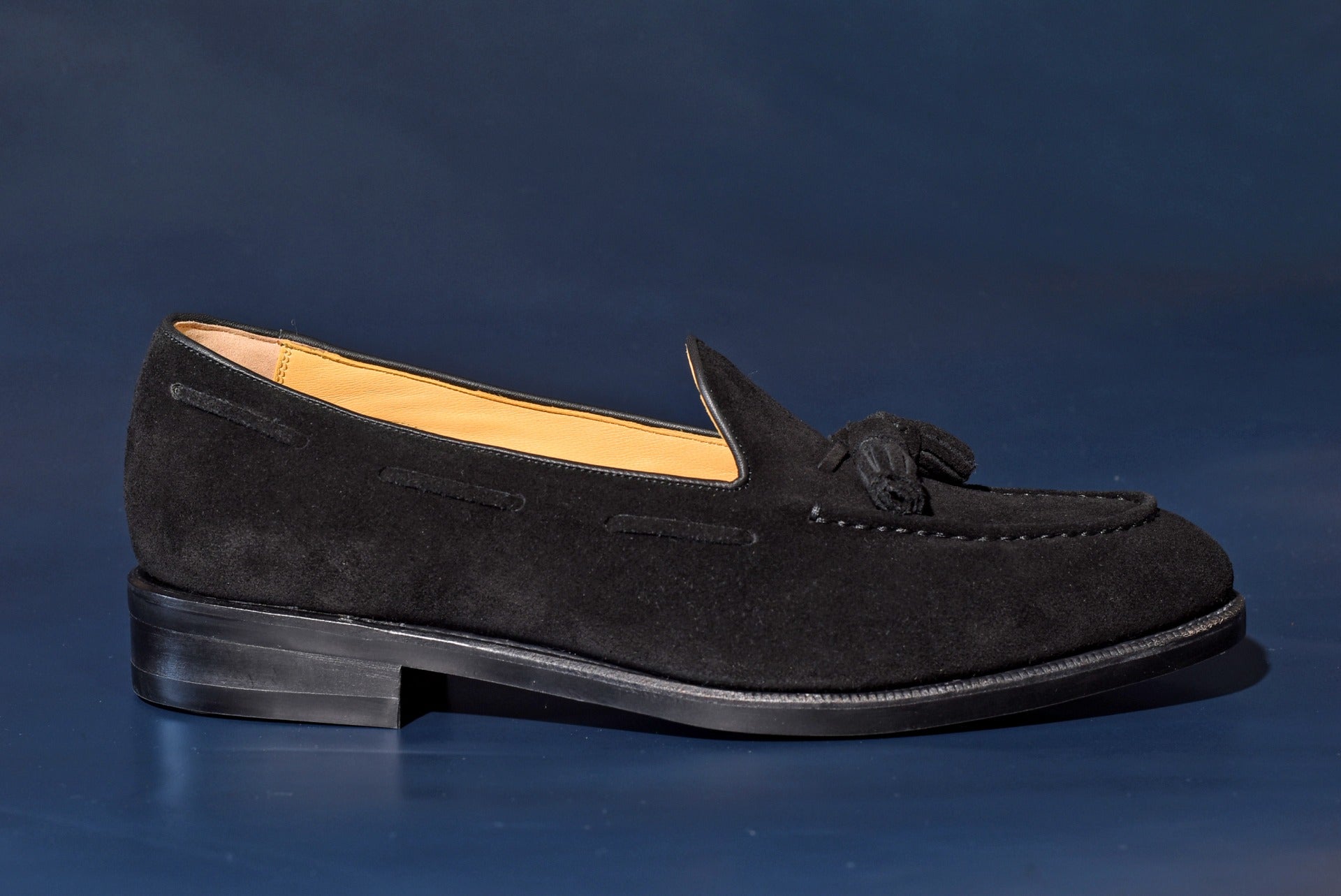 ロングセラーのタッセルローファーにスエードタイプのモデルが登場。甲革には肌理細やかやなブラックスエードを使用。