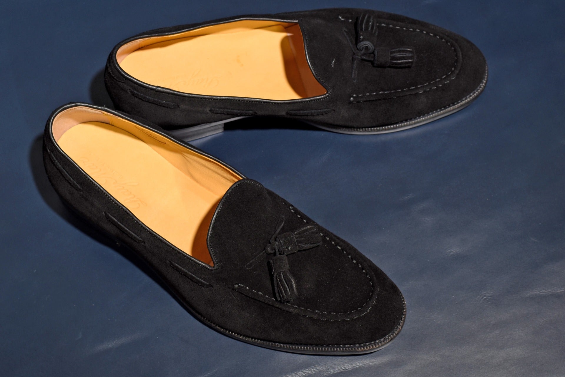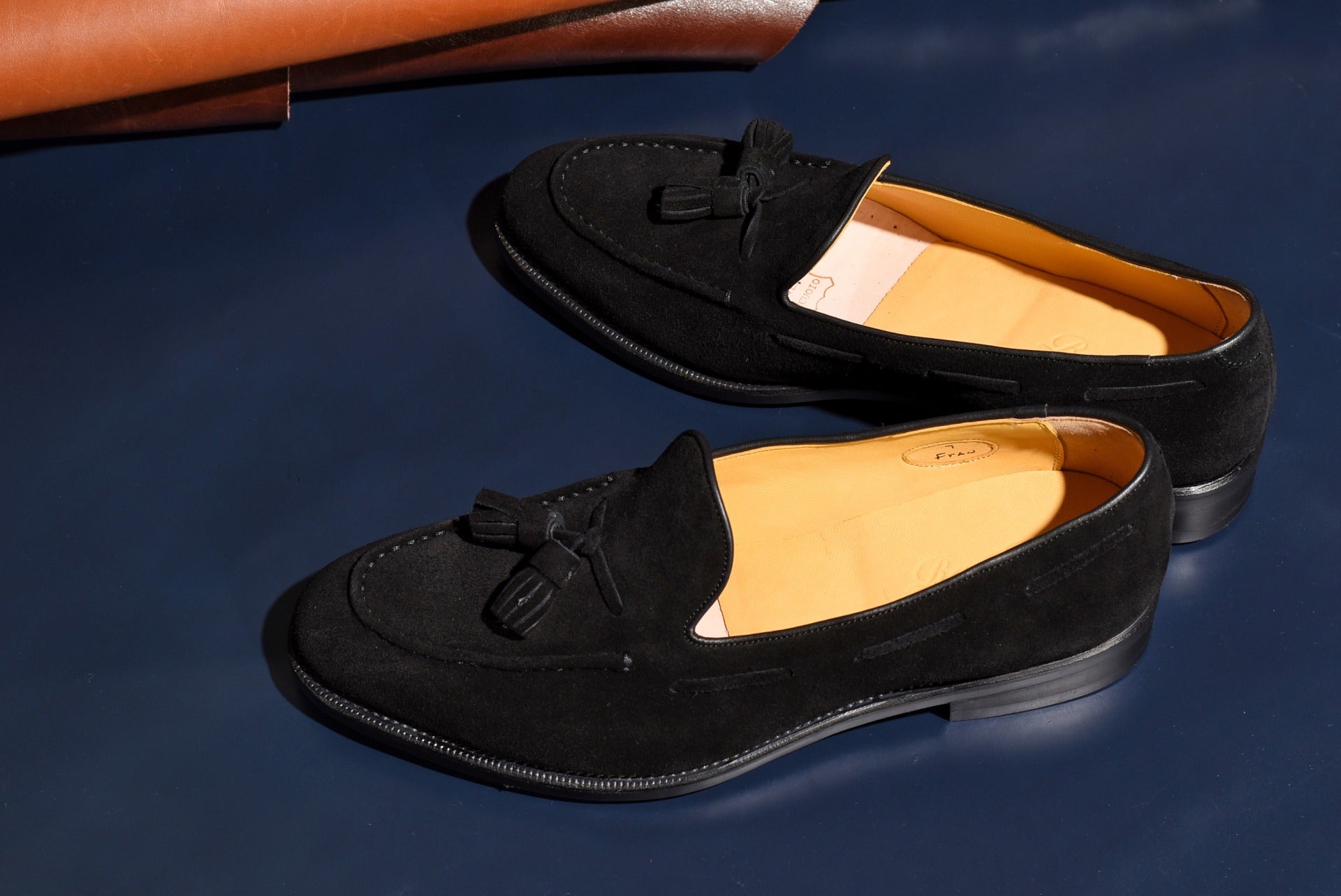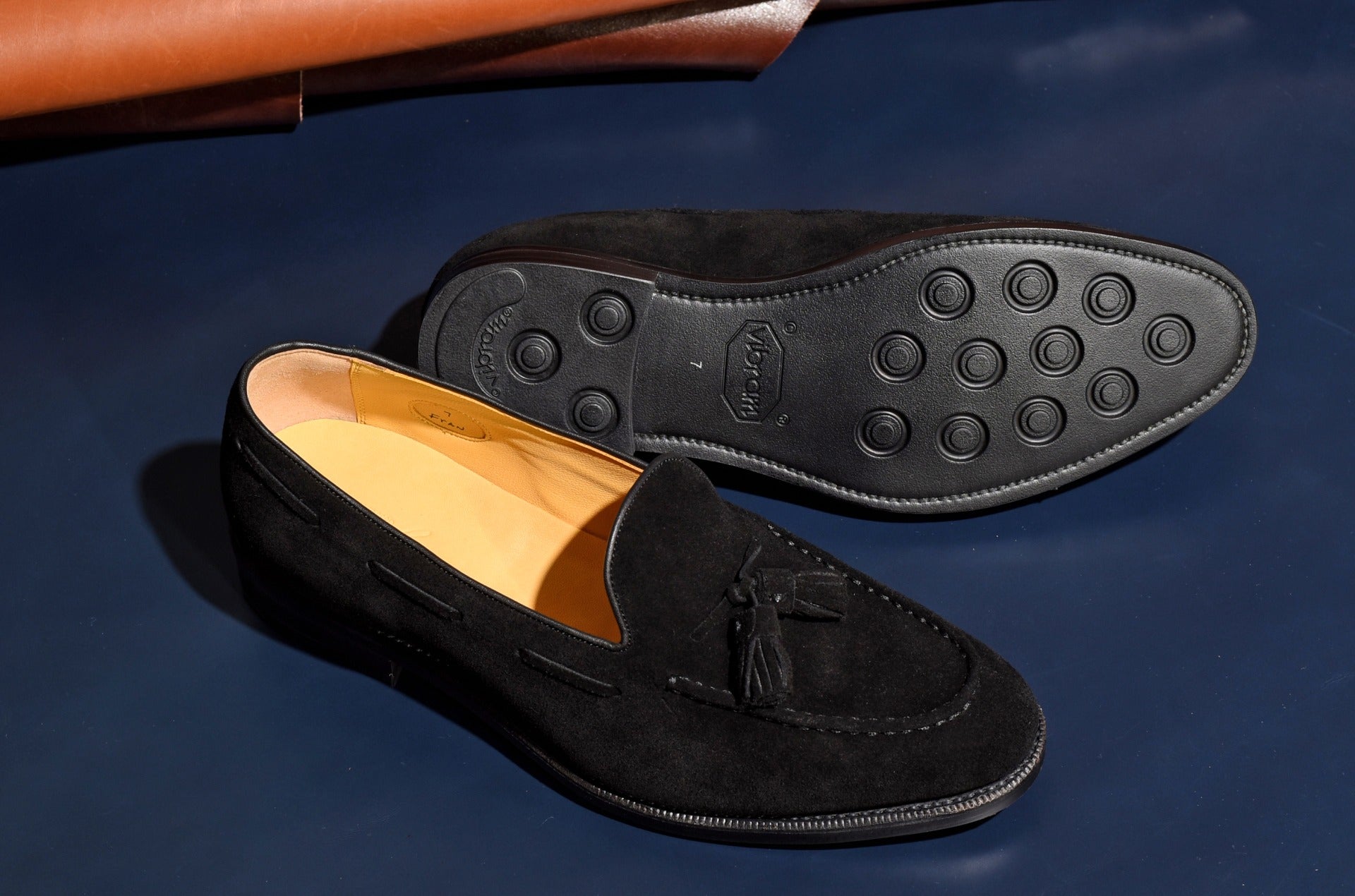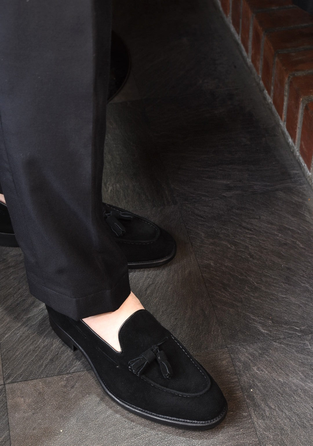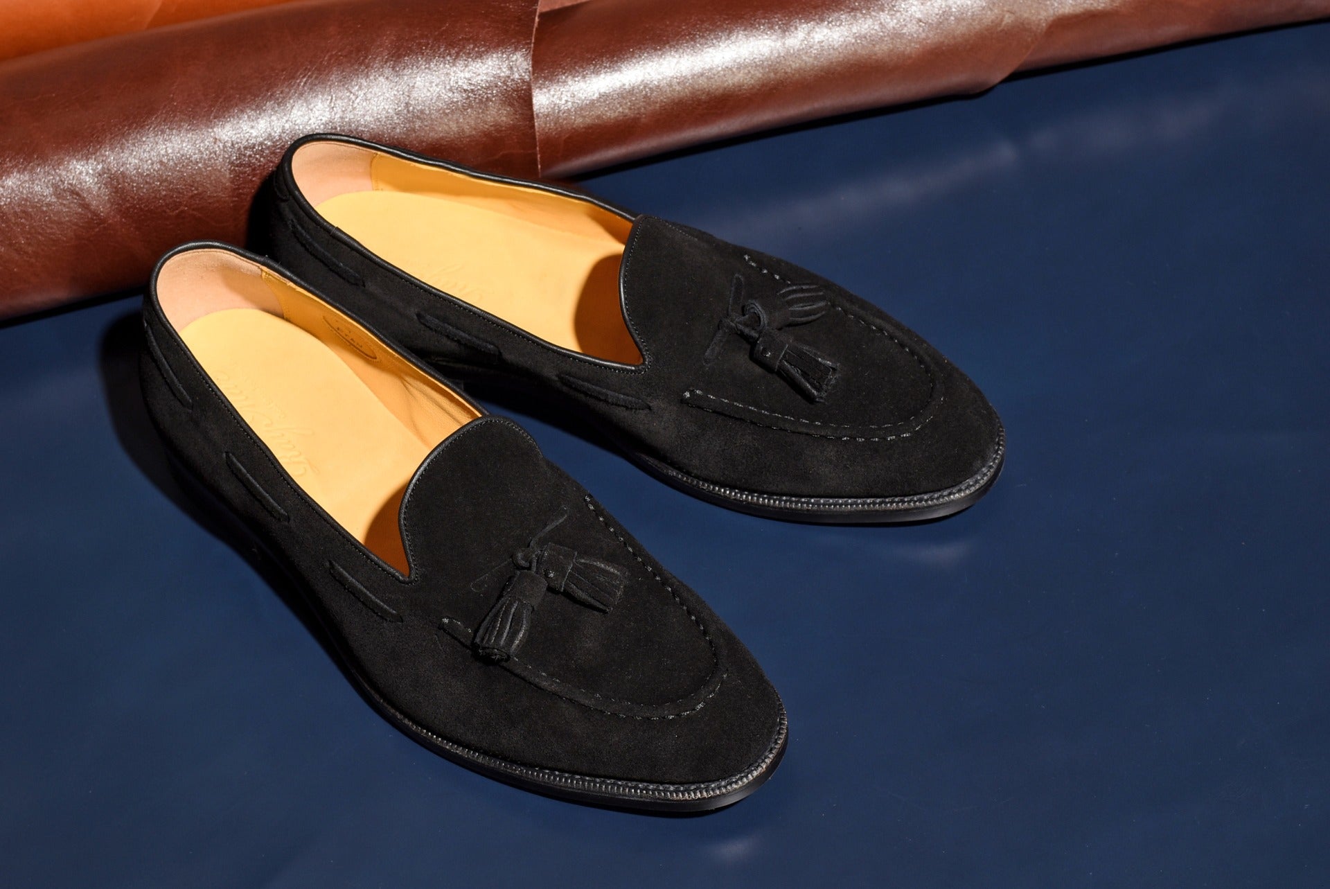 ロングセラーのタッセルローファーにスエードタイプのモデルが登場。甲革には肌理細やかやなブラックスエードを使用。