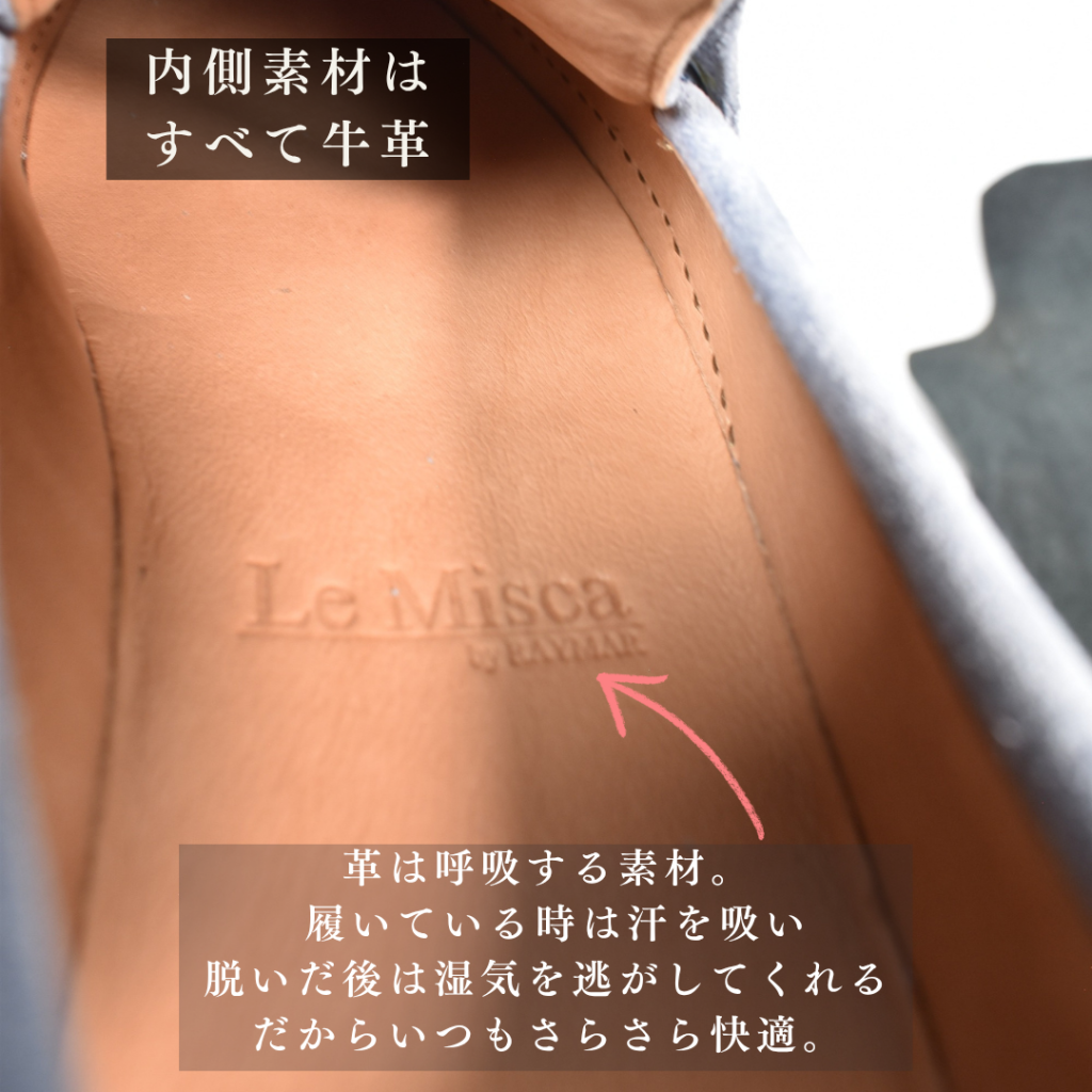 細すぎず丸すぎないバランスに整え、上品で、気を使わず履ける外観に仕上げています。