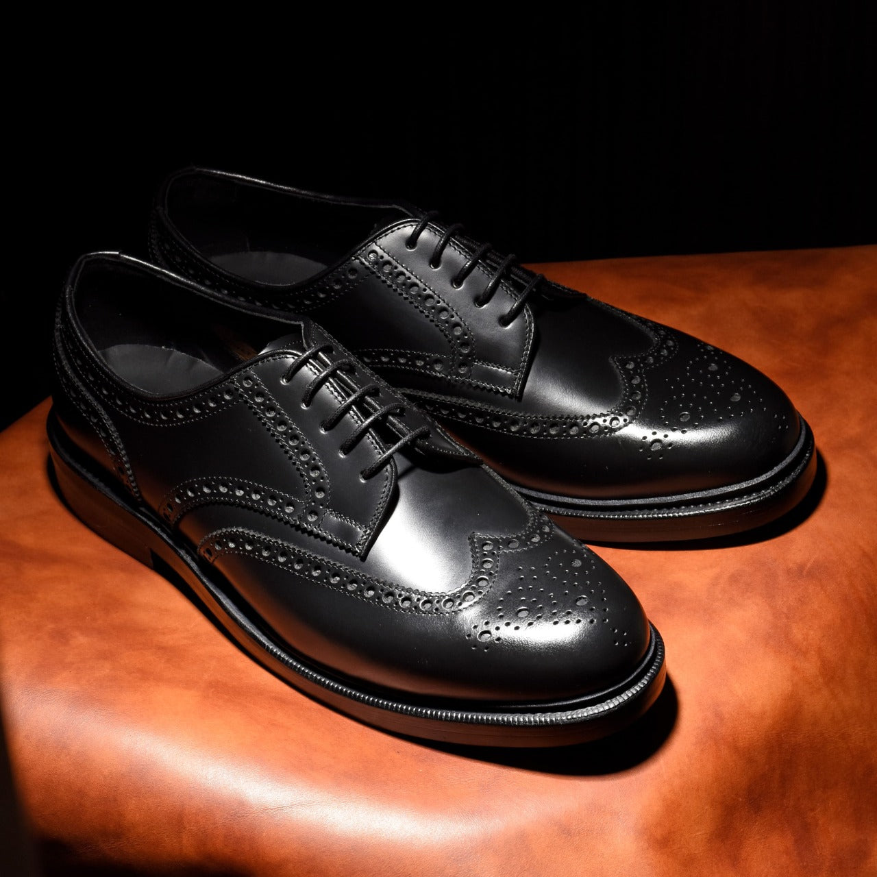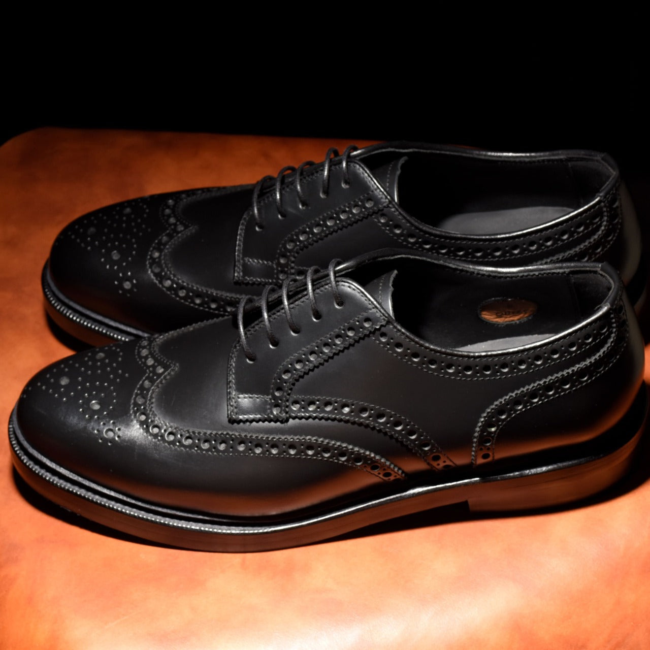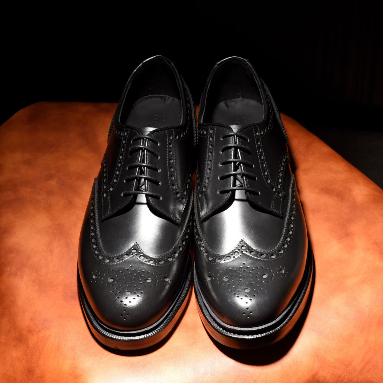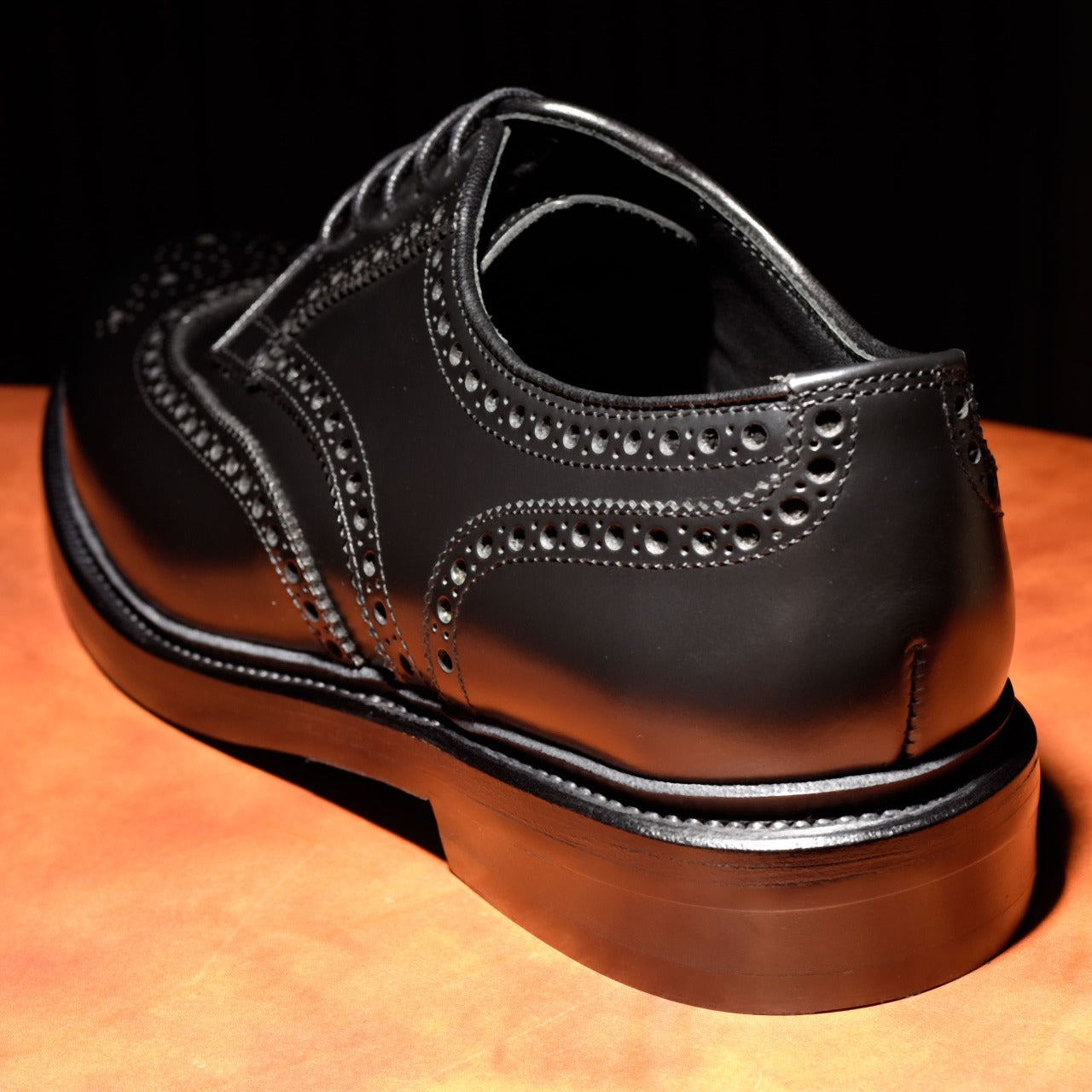 ノーズを短めに設計しつつも、木型全体に少しボリュームを持たせることでデニムやパンツとの相性も良く、カジュアルシーンからドレスシーンまで幅広く御使用頂けるバランスの良いフォルムを目指しました。※主観的意見となりますがシュッとしたフォルムよりも丸めのフォルムがお好きな方や、ビジネス&カジュアル両方で革靴を楽しまれたい方などにお勧めの木型です。