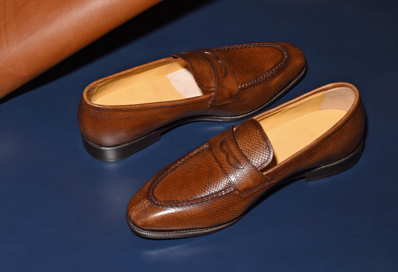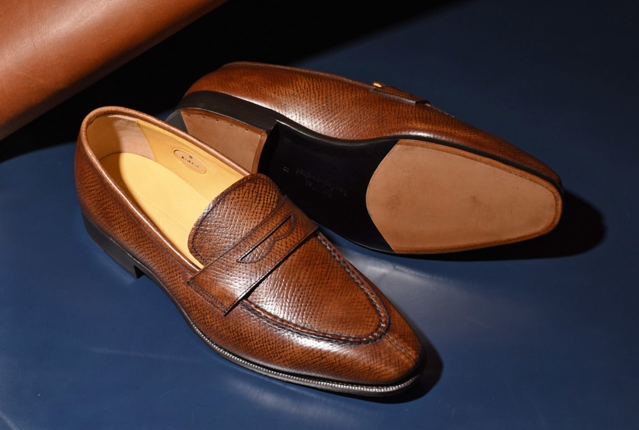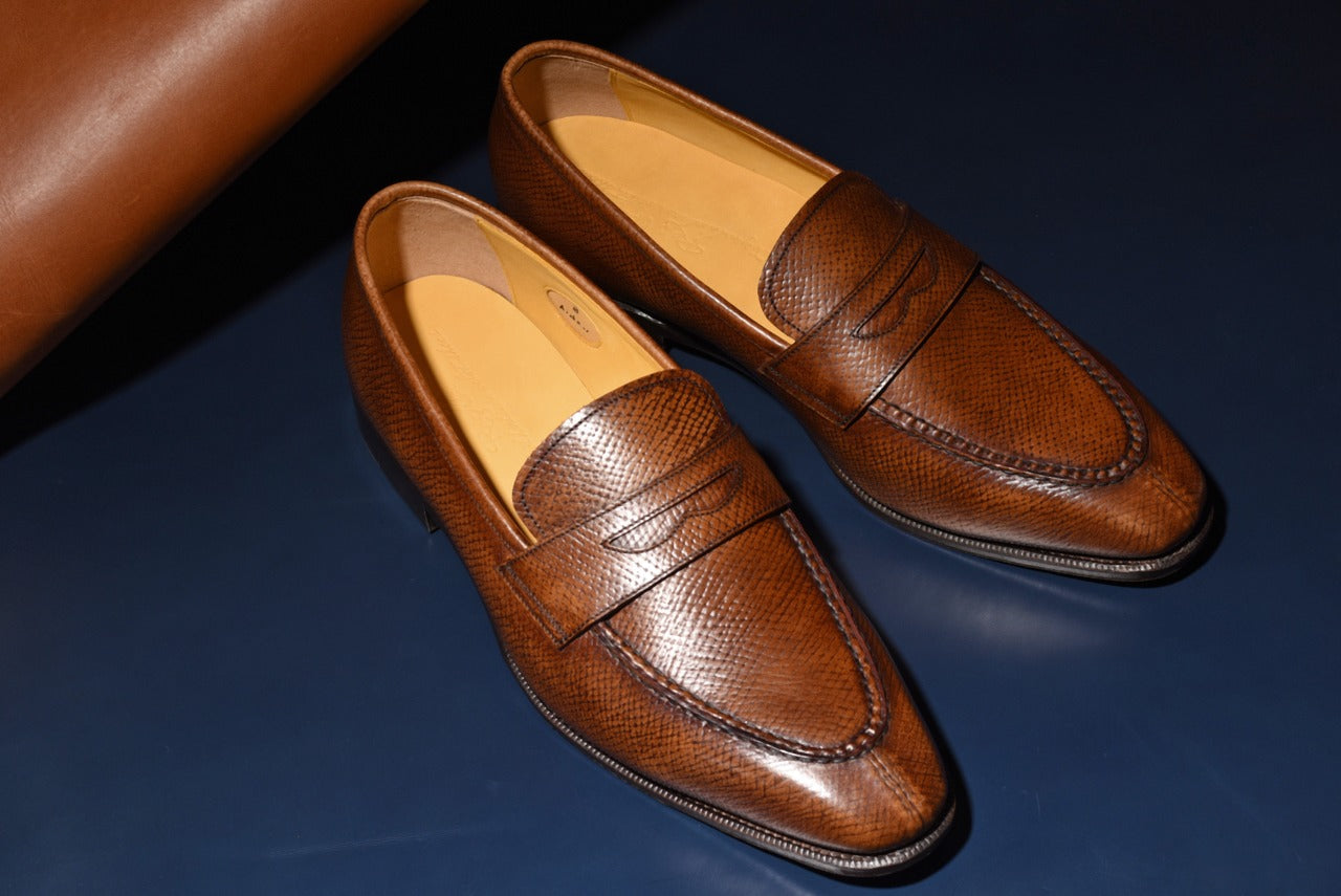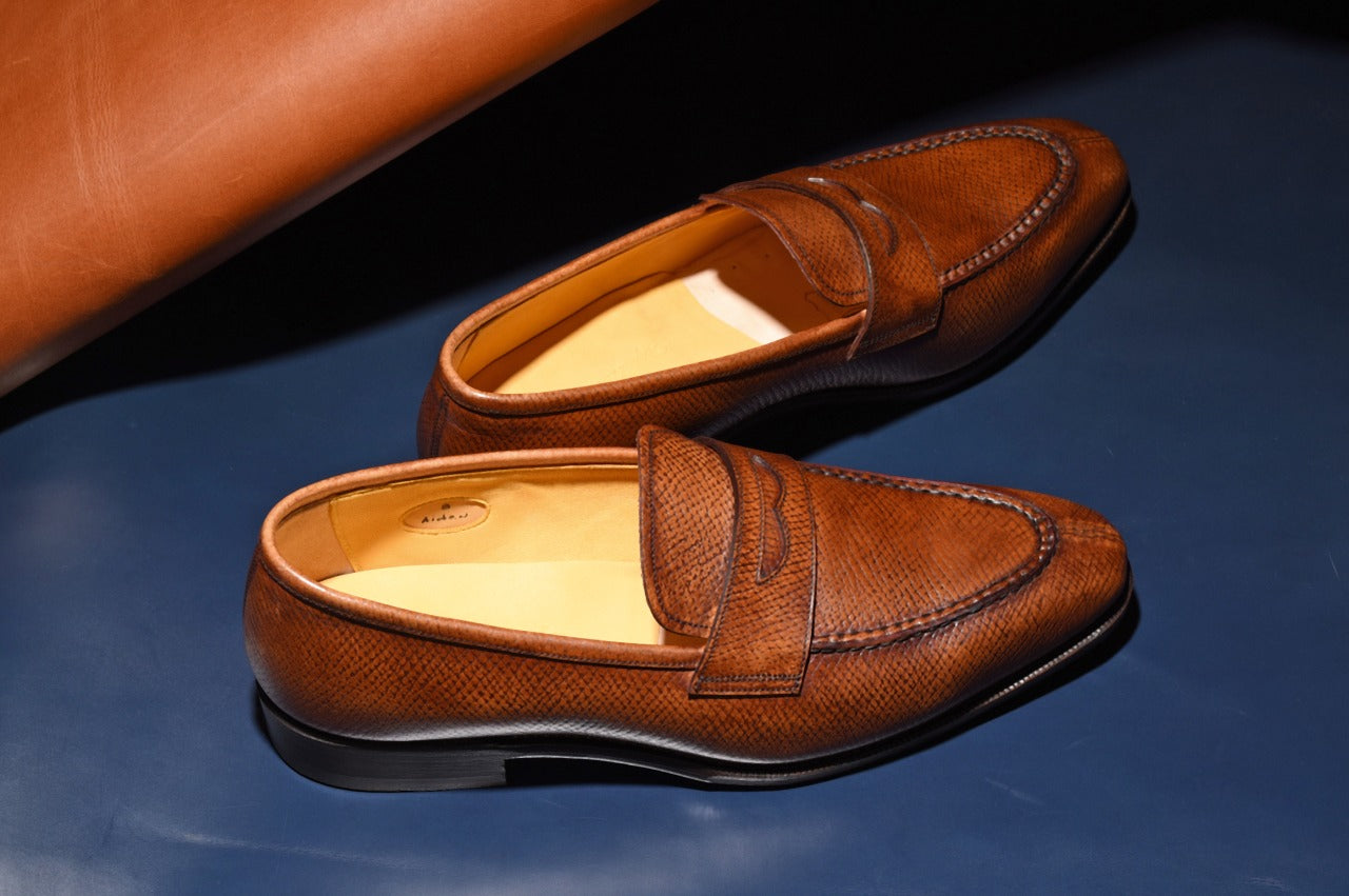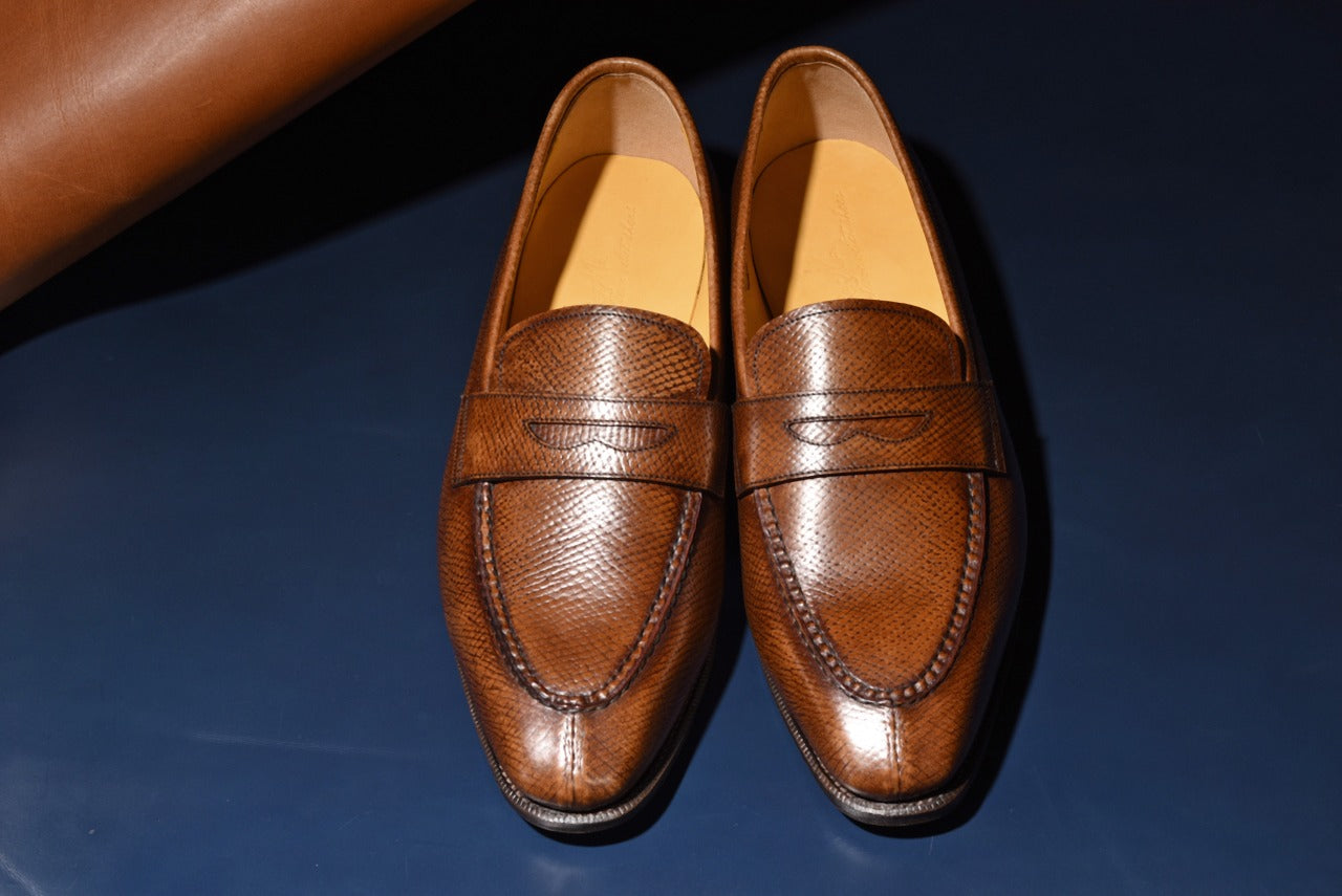 【RAYMAR】Aiden チゼルトゥスキンステッチUチップコインローファー ブラウン ホーウィンハッチグレイン ハンドソーン製法 24.0cm~27.0cm レイマー