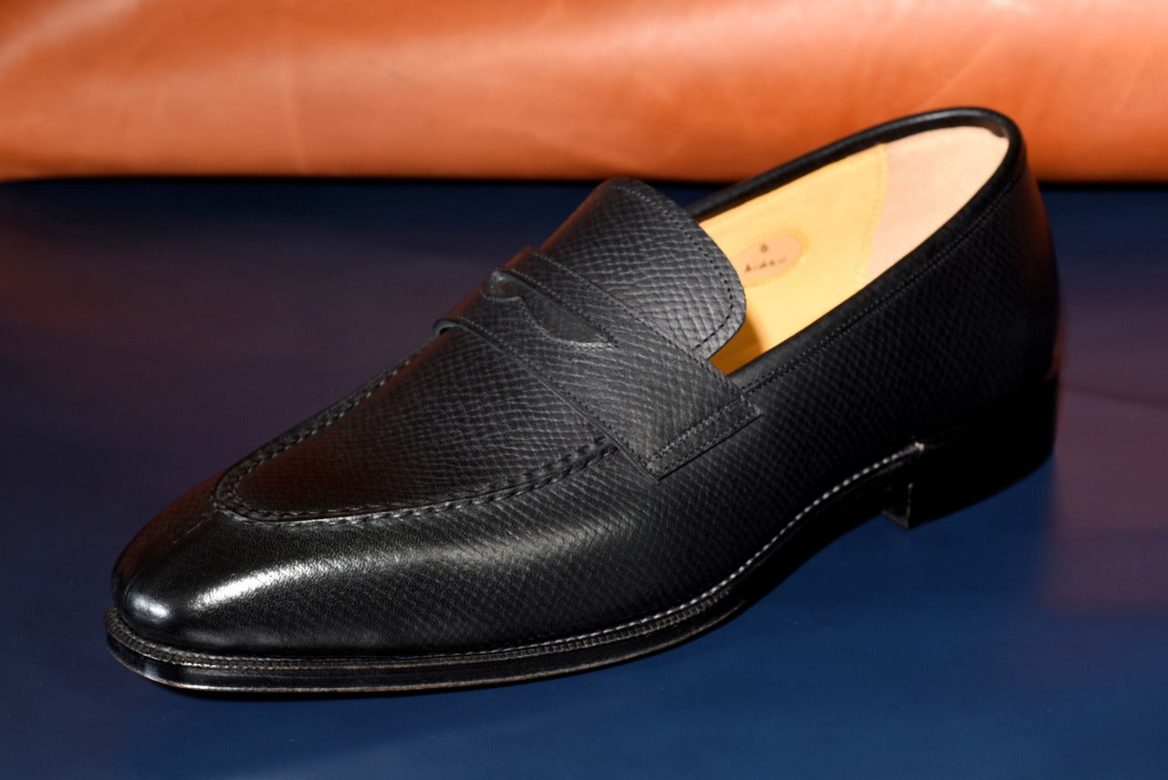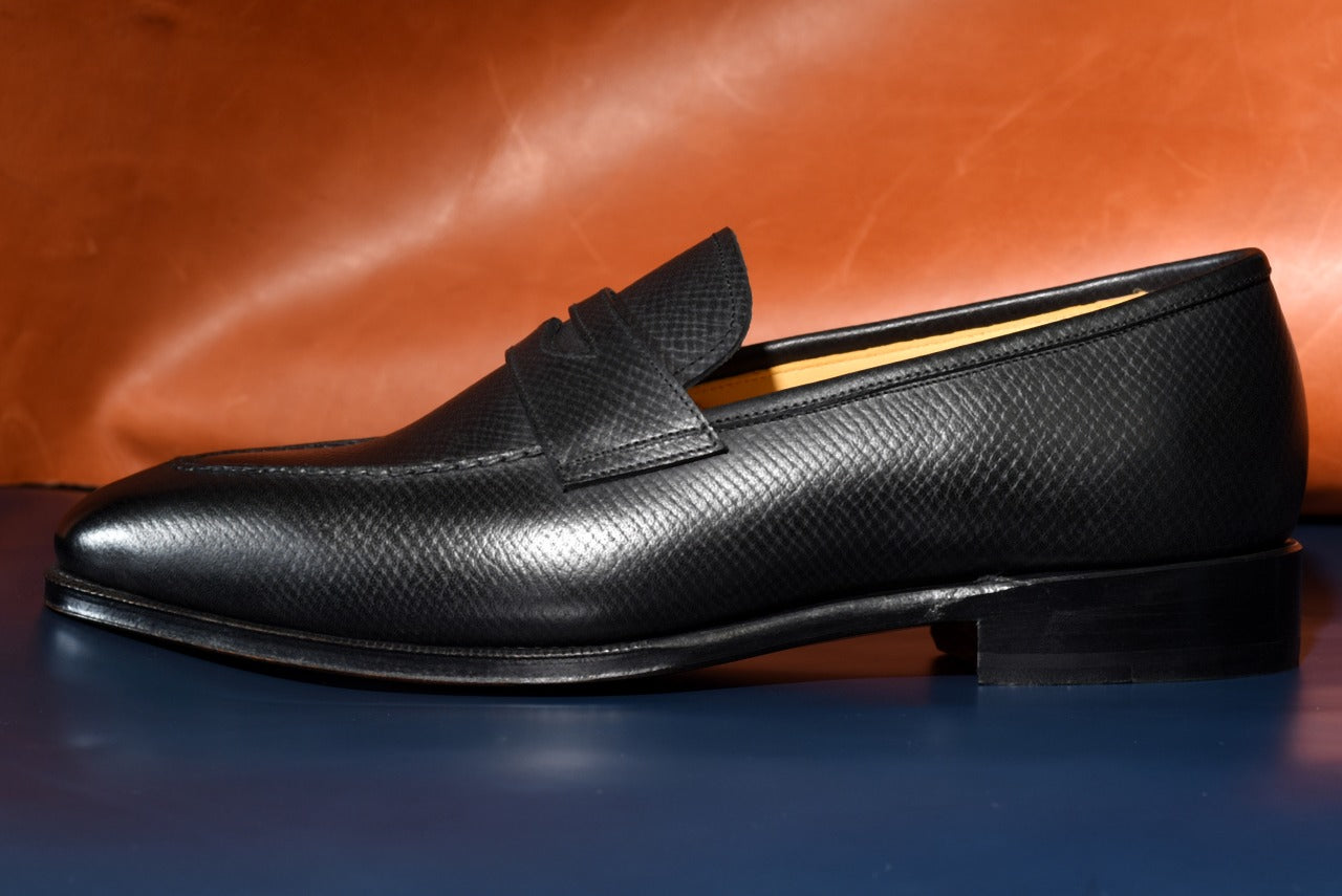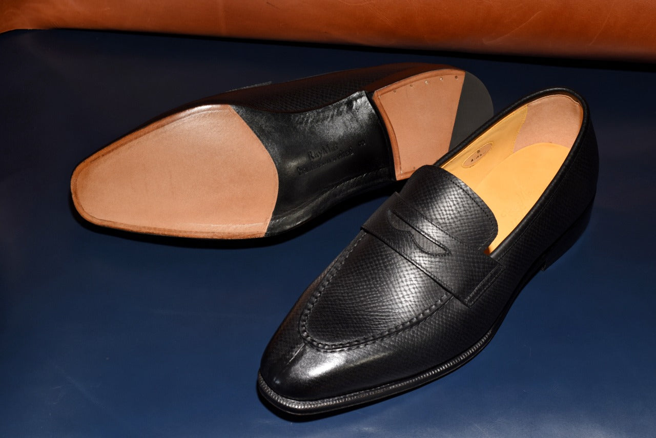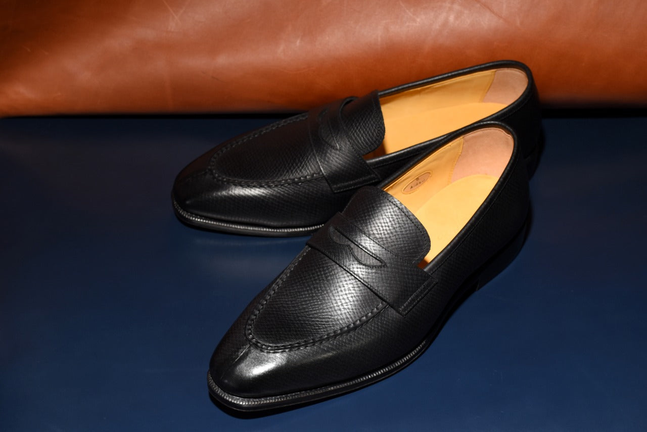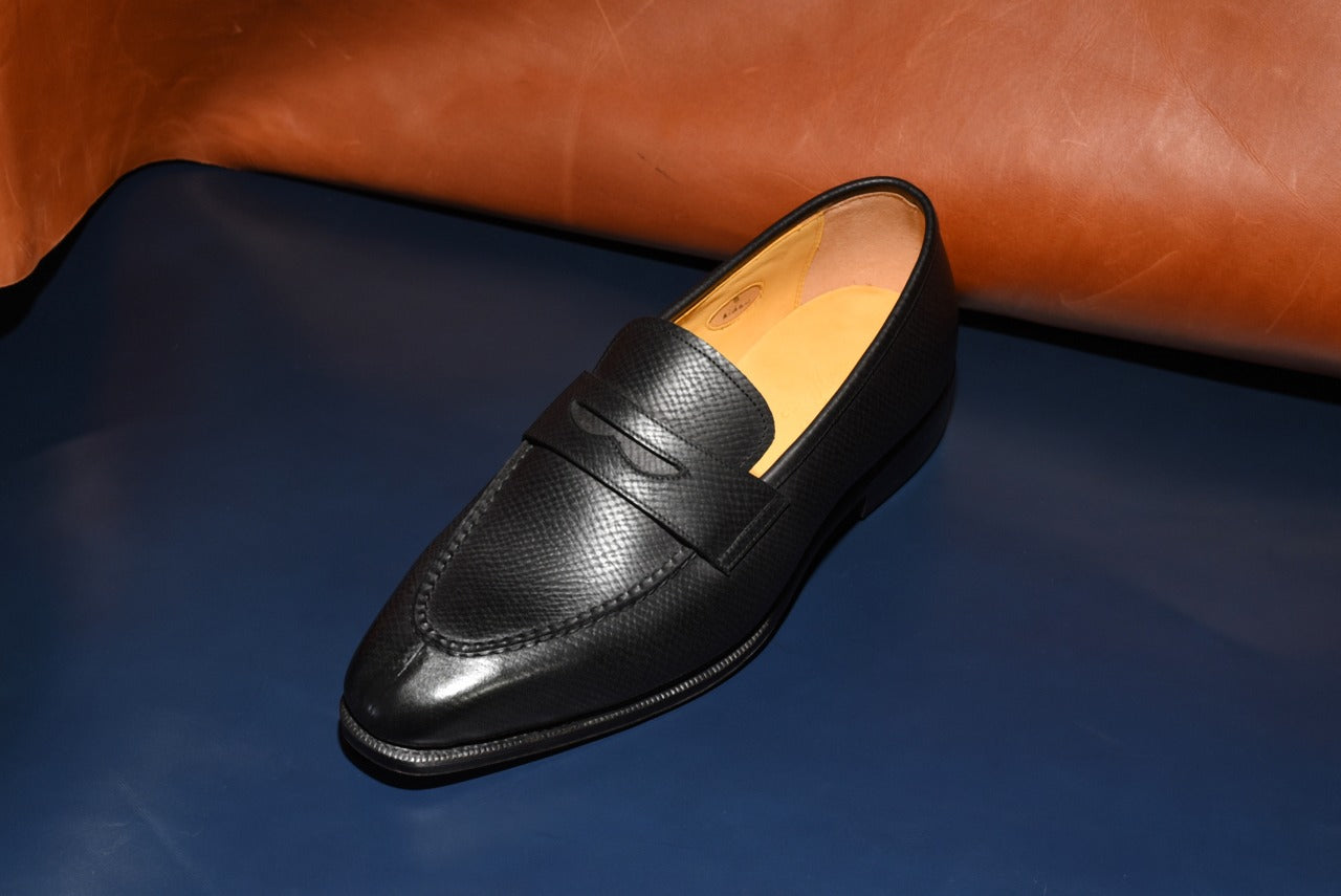 【RAYMAR】Aiden チゼルトゥスキンステッチUチップコインローファー ブラック ホーウィンハッチグレイン ハンドソーン製法 24.0cm~27.0cm レイマー (コピー)