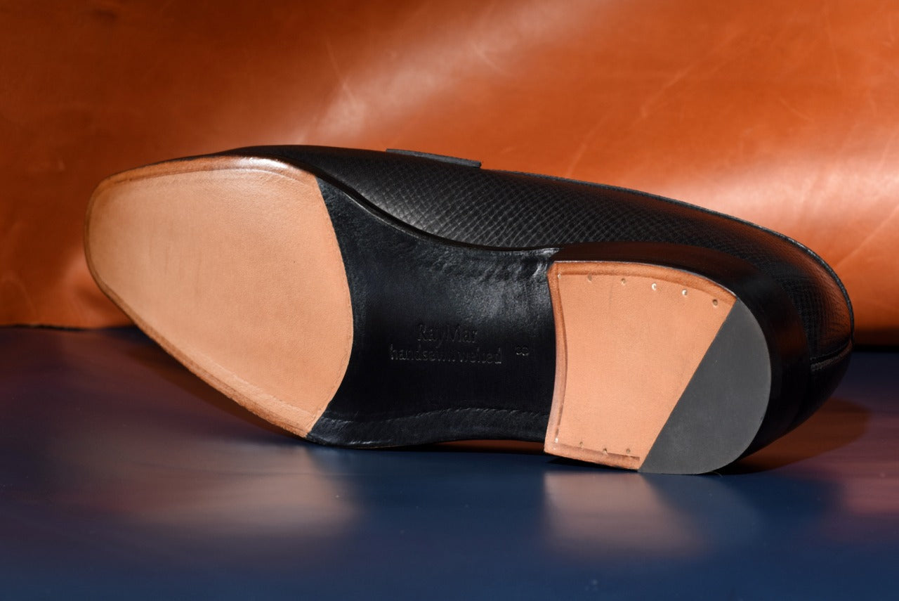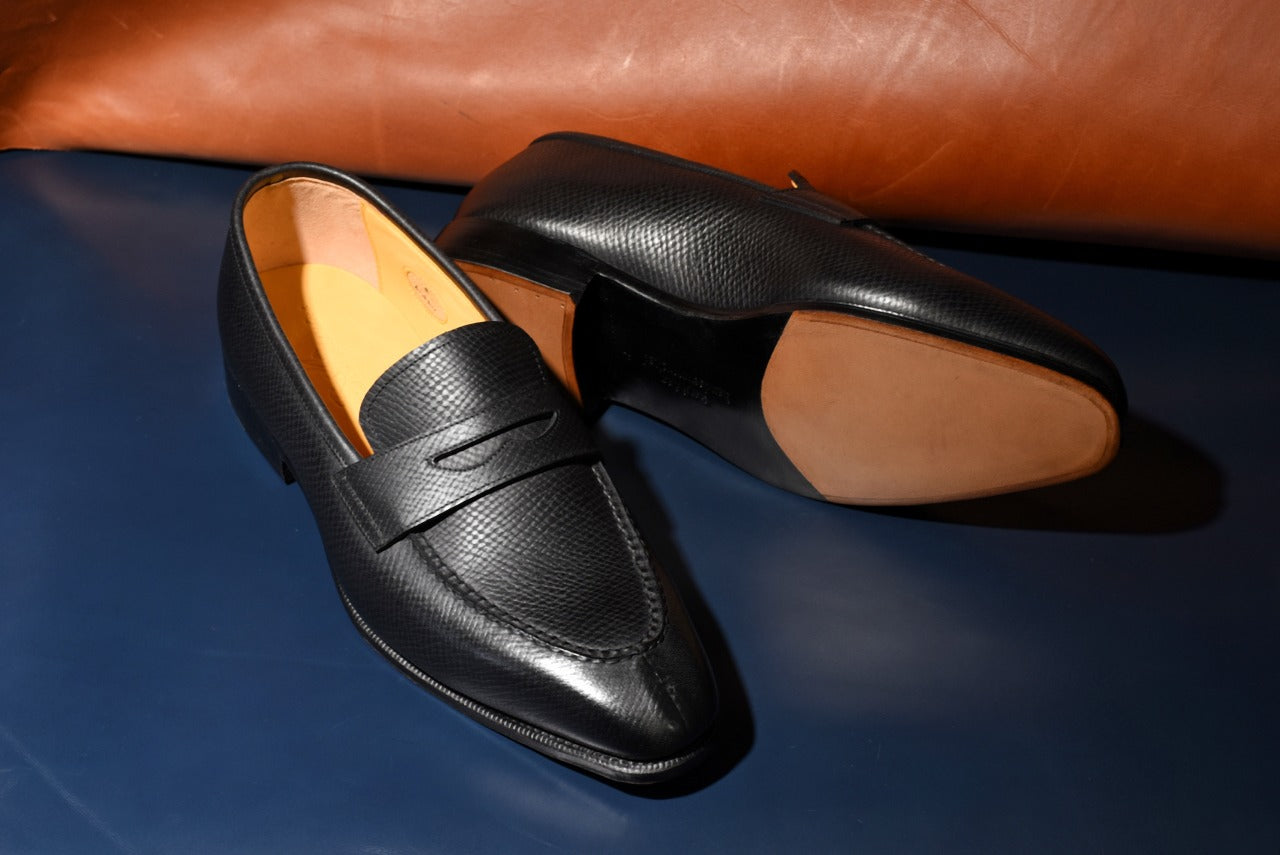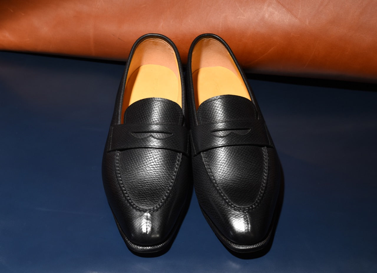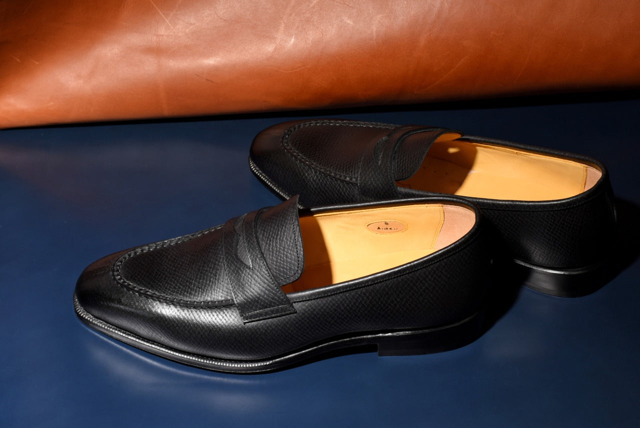 【RAYMAR】Aiden チゼルトゥスキンステッチUチップコインローファー ブラック ホーウィンハッチグレイン ハンドソーン製法 24.0cm~27.0cm レイマー (コピー)