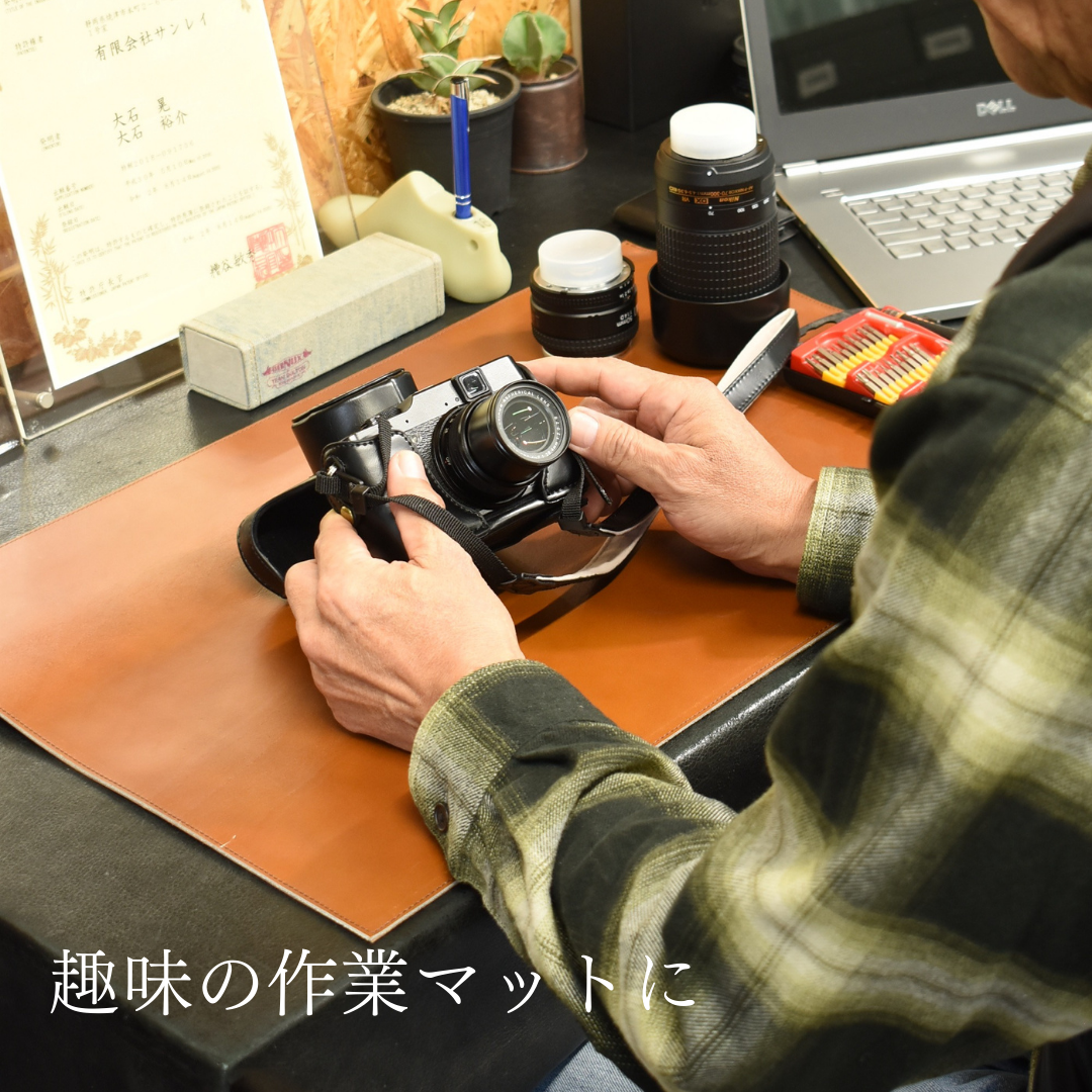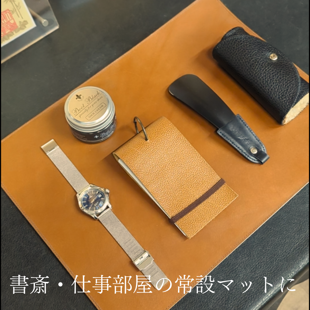 【RAYMAR】革の書斎マット 60cm×40cm / 40cm×30cm フランスAnnonay社Vocalouブラウン使用 アノネイ 牛革ボックスカーフ ボカルー レイマー