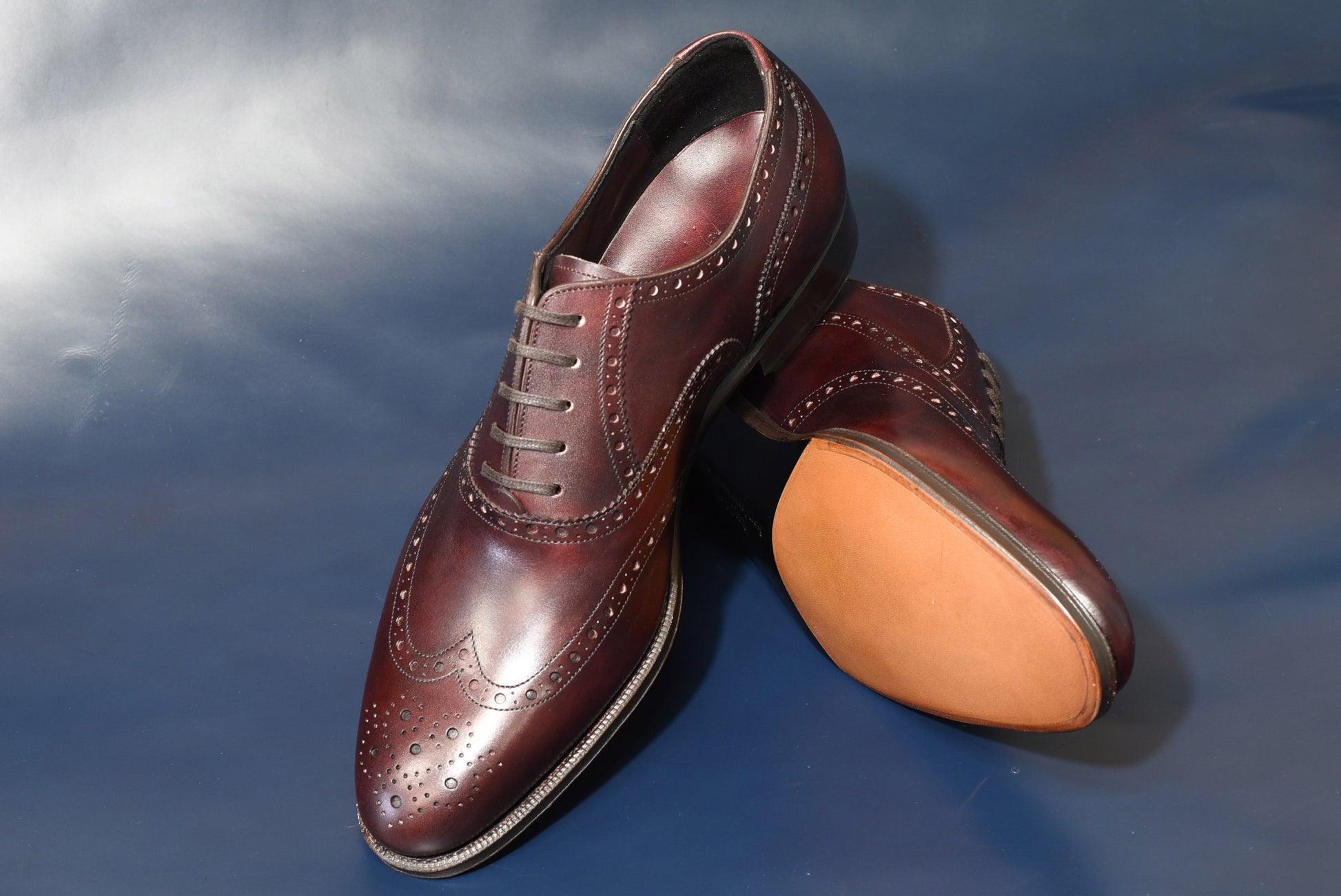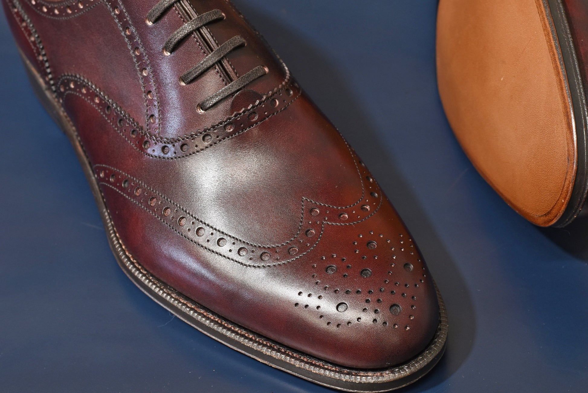 ぱっと見「ウイングチップ」なのですが、実は「プレーントゥ」というところがこのモデルの心憎い部分の一つです。自分しか知らない秘密といったところでしょうか。