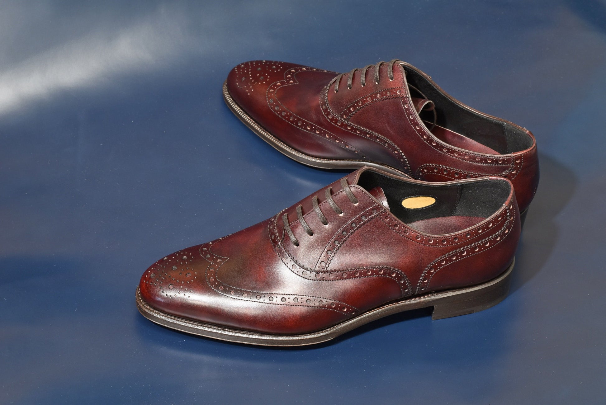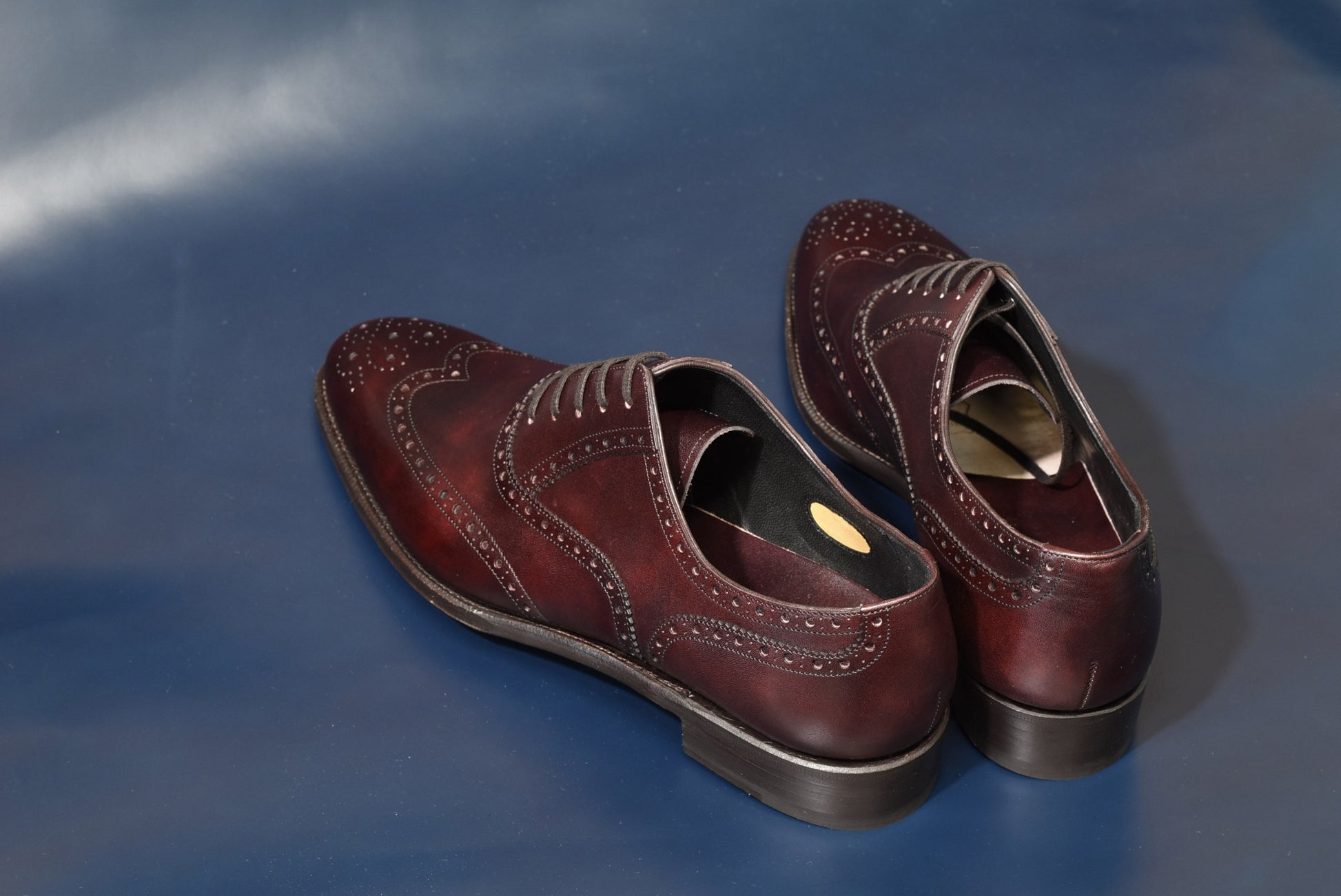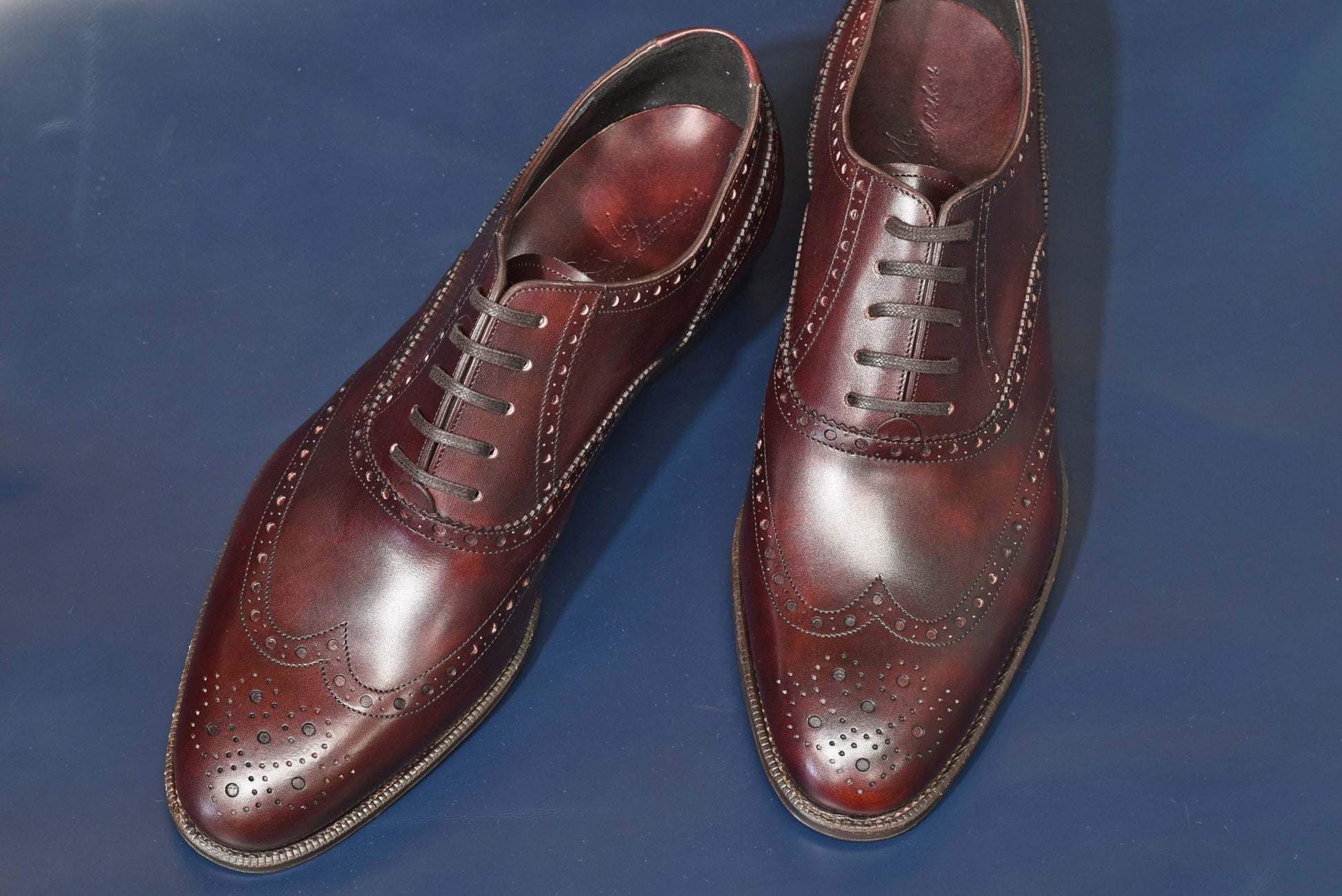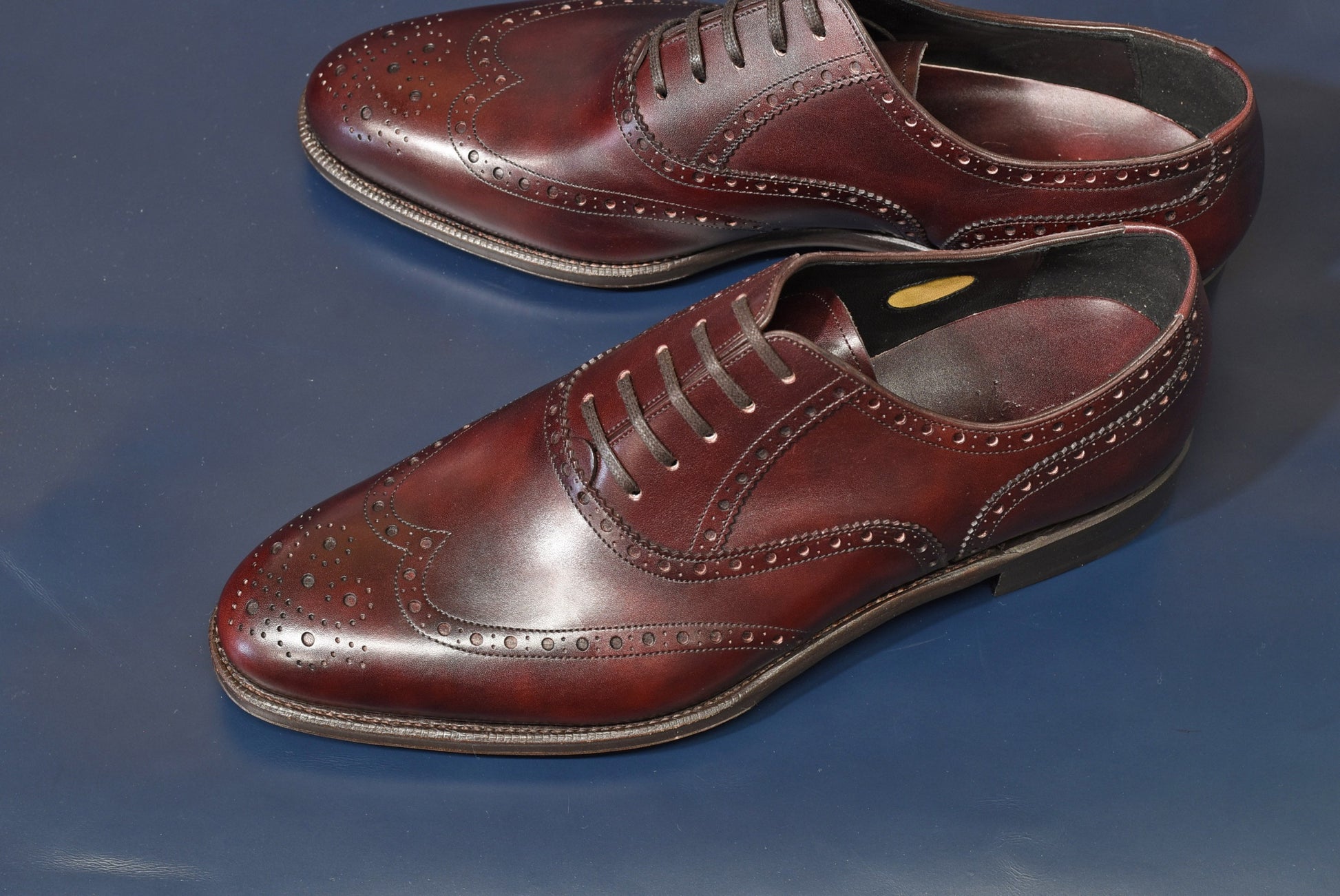 そして絵型の中でご希望頂いておりました通り、おかめ(ウイング部分:W部分)は「イミテーションブローグ」に。イミテーションブローグは二の甲部分(指の付け根上部)で革が重ならない為、すっきりした印象に。
