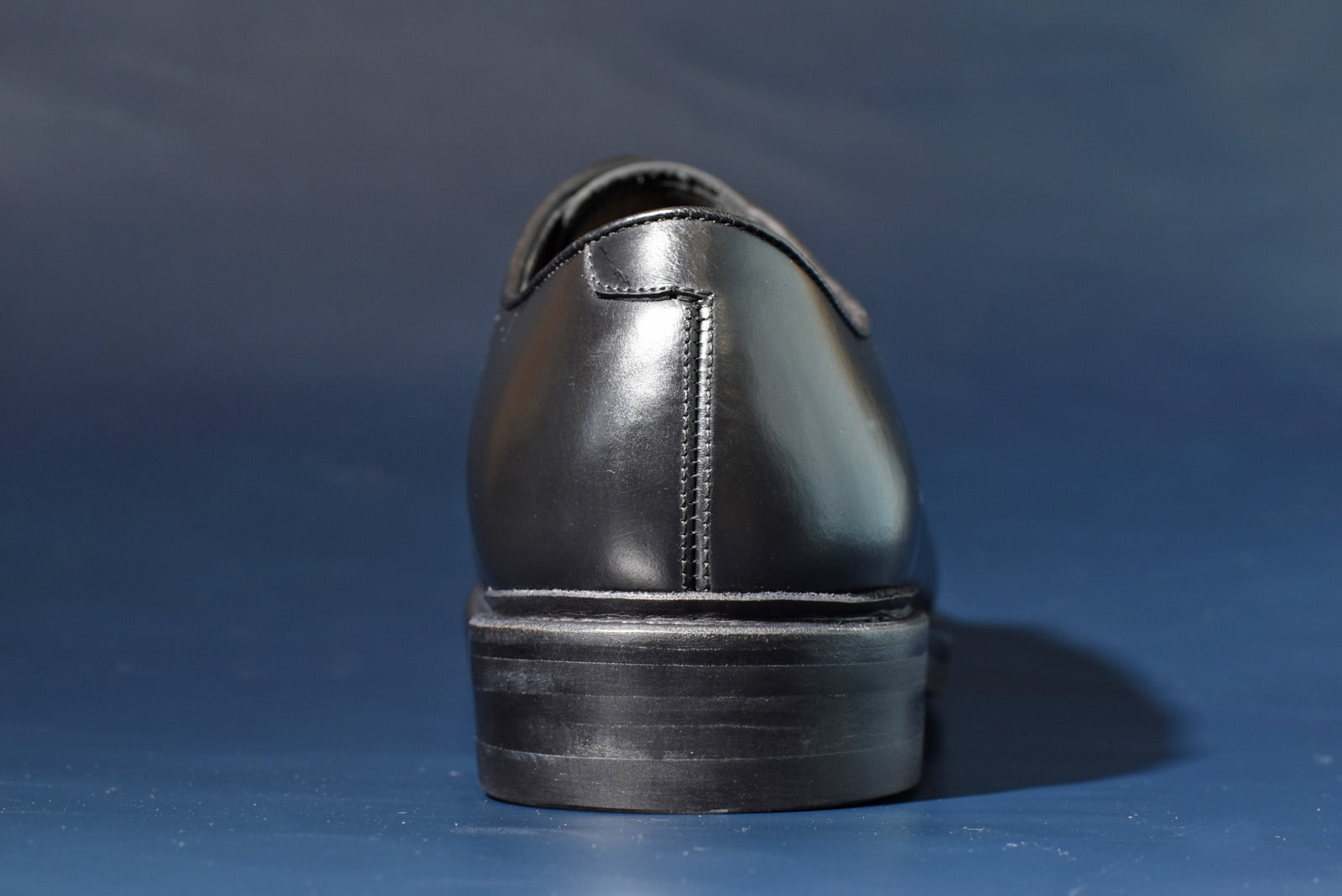 ノーズを短めに設計しつつも、木型全体に少しボリュームを持たせることでデニムやパンツとの相性も良く、カジュアルシーンからドレスシーンまで幅広く御使用頂けるバランスの良いフォルムを目指しました。※主観的意見となりますがシュッとしたフォルムよりも丸めのフォルムがお好きな方や、ビジネス&カジュアル両方で革靴を楽しまれたい方などにお勧めの木型です。