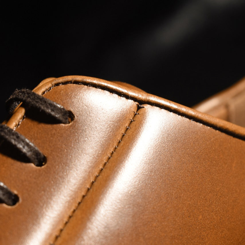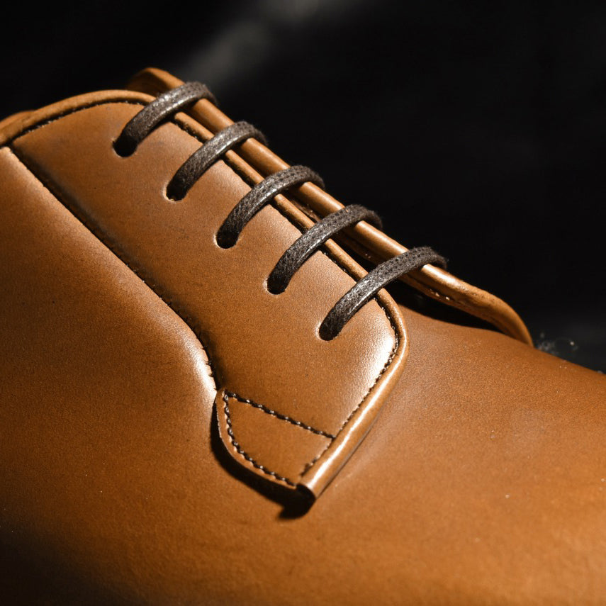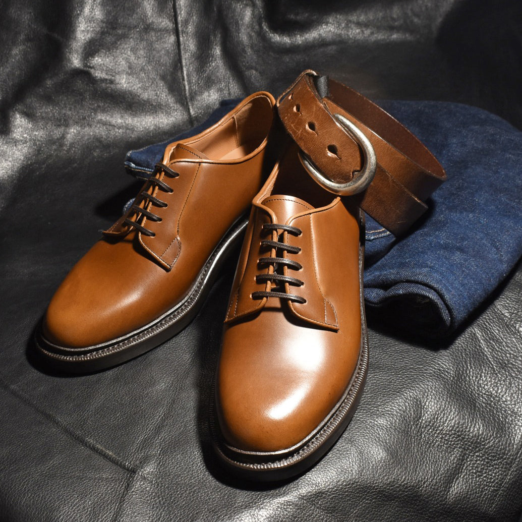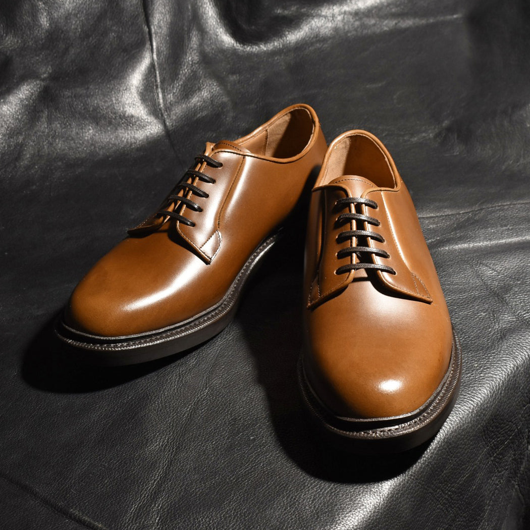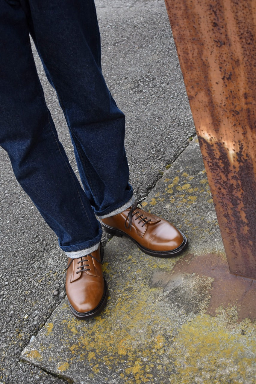 ノーズを短めに設計しつつも、木型全体に少しボリュームを持たせることでデニムやパンツとの相性も良く、カジュアルシーンからドレスシーンまで幅広く御使用頂けるバランスの良いフォルムを目指しました。※主観的意見となりますがシュッとしたフォルムよりも丸めのフォルムがお好きな方や、ビジネス&カジュアル両方で革靴を楽しまれたい方などにお勧めの木型です。