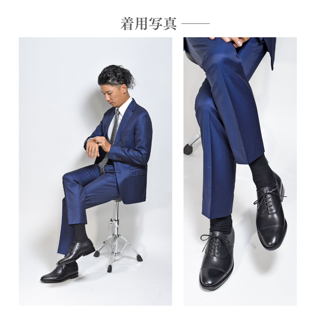 ・ハーフソック仕様の「木型0401番/5722番」を使用したモデルをタイト目で履かれていらっしゃる場合、こちらのモデルは「ハーフサイズアップ」がおすすめとなります。
