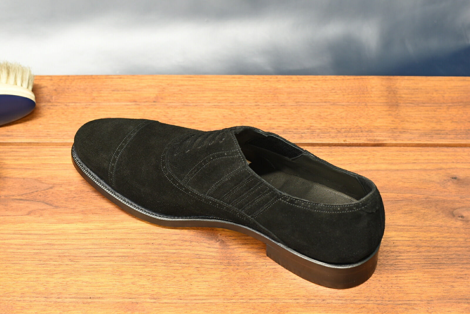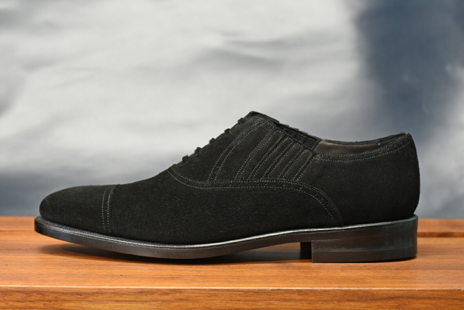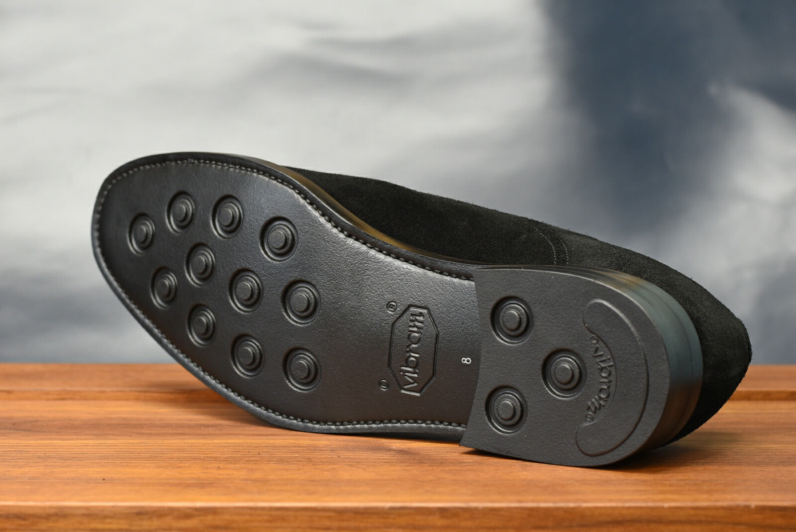 肌理細かなビロードの様な美しい見た目にしなやかで柔らかな革質が優しく足を包み込む履き心地、そしてグッドイヤー製法の堅牢性が共存する一足を是非この機会にお試しくださいませ。